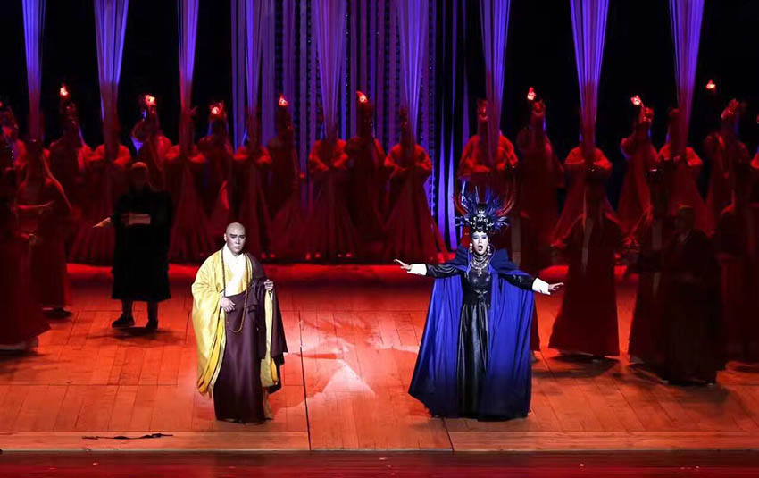 歌劇《鑒真東渡》的導演,國家一級編導邢時苗老師介紹,歌劇《鑒真東渡》原定是12月22日、23日在日本的奈良首演。后來有人建議,能不能在東京演出一場。于是,他就在東京尋找合適的演出場所。恰巧有個合適的劇院,20日那天有檔期。簽下演出合同之后,邢時苗老師才發(fā)覺,在1200多年前,鑒真成功東渡到日本的日期,恰恰就是12月20日。這是一次巧合,更是對鑒真大師的致敬。