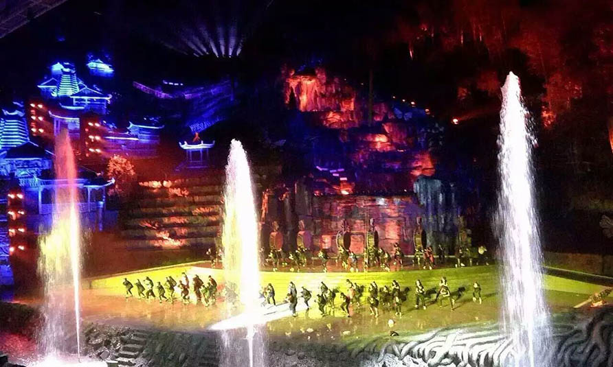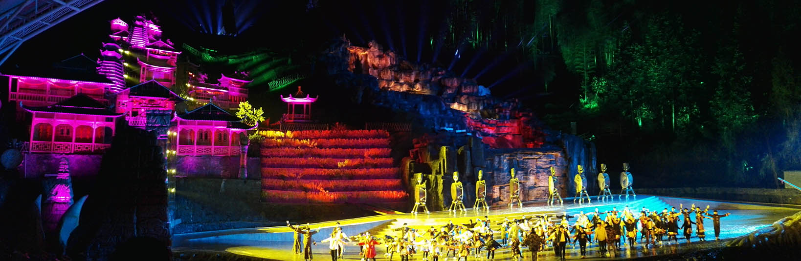 浩洋電子通過極富創(chuàng)意的燈光設(shè)計和表現(xiàn)力十足的燈光應(yīng)用,準(zhǔn)確地描繪出侗寨的文化特性,將燈光演繹與當(dāng)?shù)氐纳剿L(fēng)景完美融合,共同構(gòu)成一個演出的整體,為《薩瑪》增添了新的藝術(shù)形態(tài),衍生出了新的看點,成為貴州省內(nèi)極具民族文化特色的旅游演藝新標(biāo)桿!