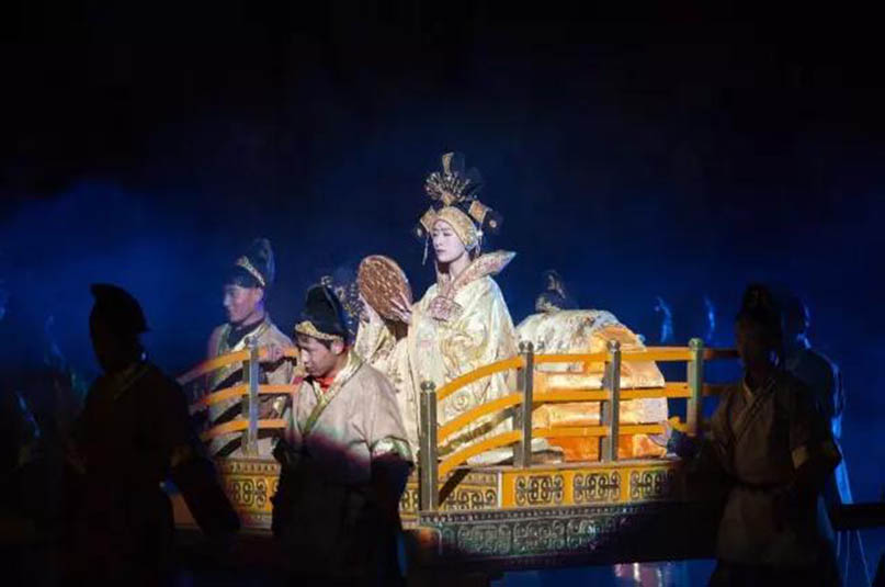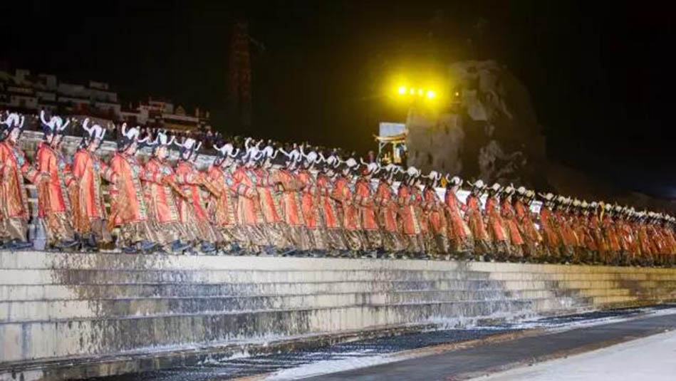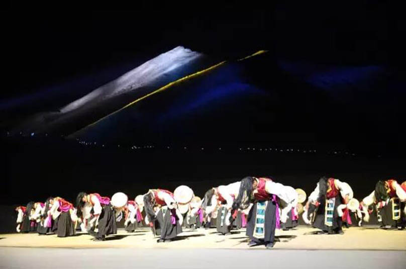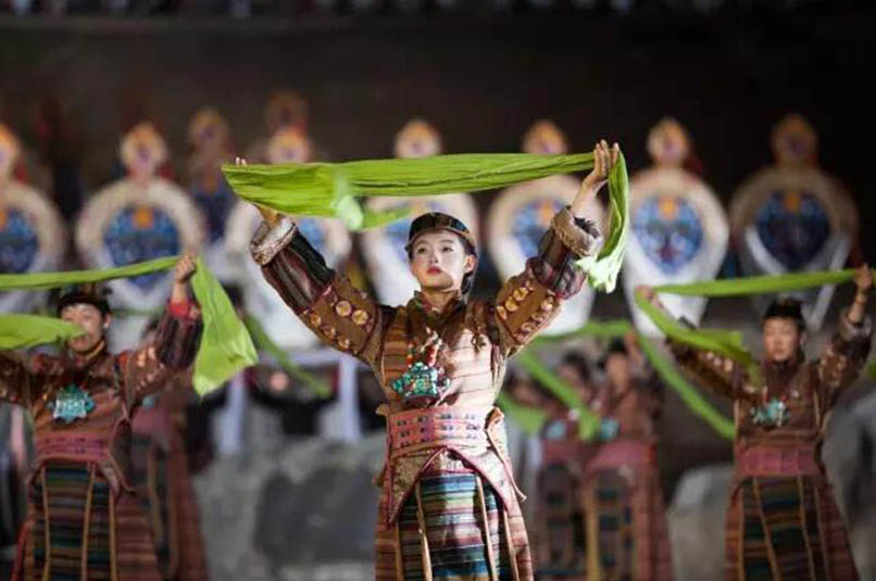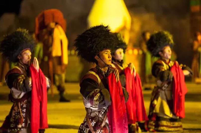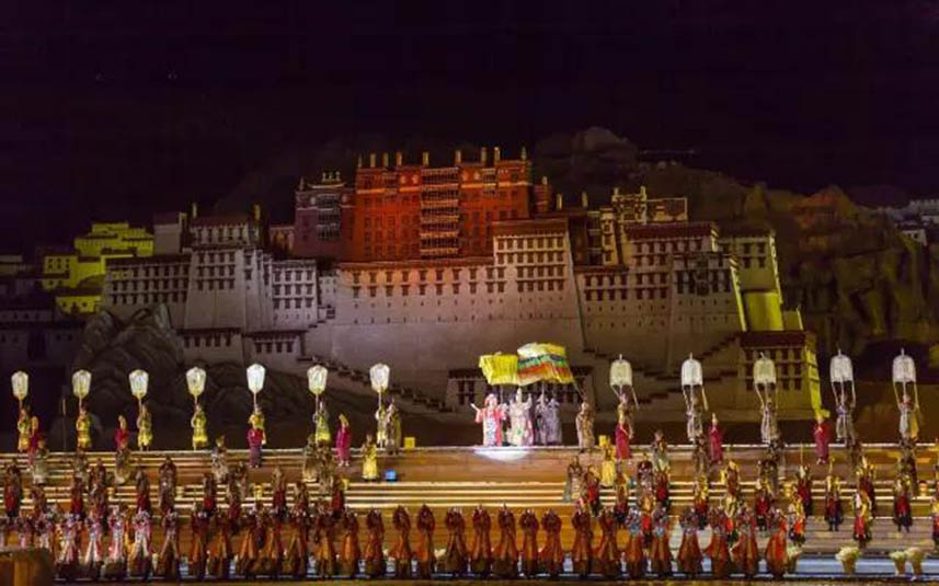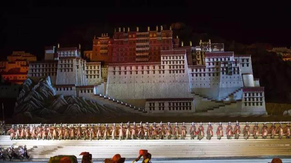 大型藏族實(shí)景劇《文成公主》主要講述文成公主入藏歷經(jīng)艱難的征途和曲折起伏的心路歷程,演繹大唐盛世的愛情傳奇,傳唱漢藏和美的動人史歌。該作品分為“大唐之韻”、“天地梵音”、“藏舞大美”、“藏舞大美”及“藏舞大美”五幕,深度融入漢藏歷史文化、民族風(fēng)俗、自然景觀等,引入了大唐歌舞和流傳久遠(yuǎn)的藏舞、藏戲、佛號念唱等,通過人工舞臺與自然山水的結(jié)合,用高科技的手段呈現(xiàn)非物質(zhì)文化遺產(chǎn),把戲劇、音樂、舞蹈和現(xiàn)代舞美手段融為一爐,構(gòu)成華美樂章。
