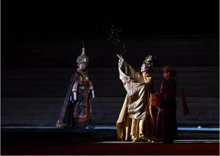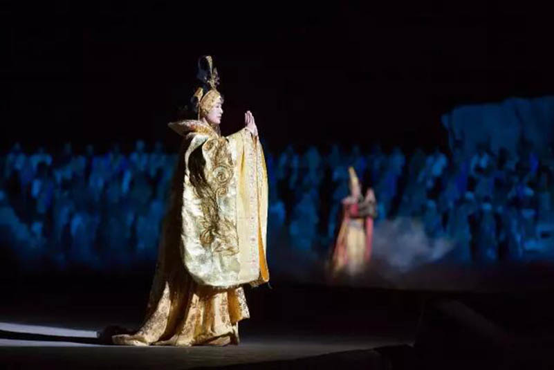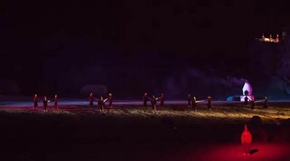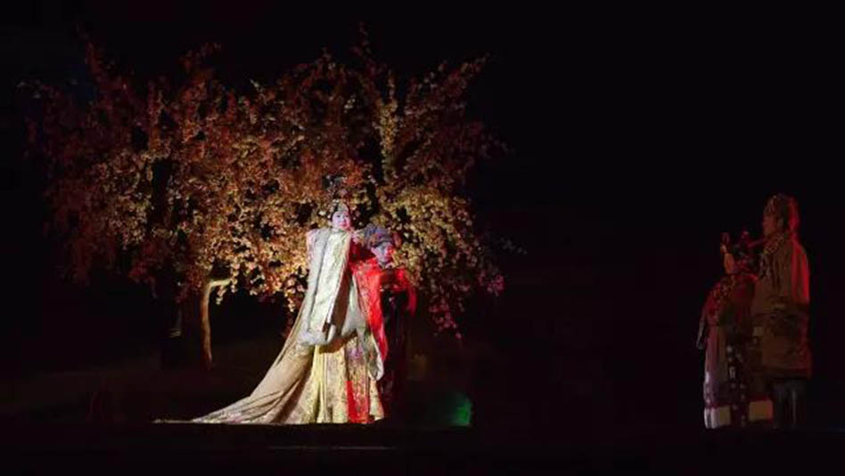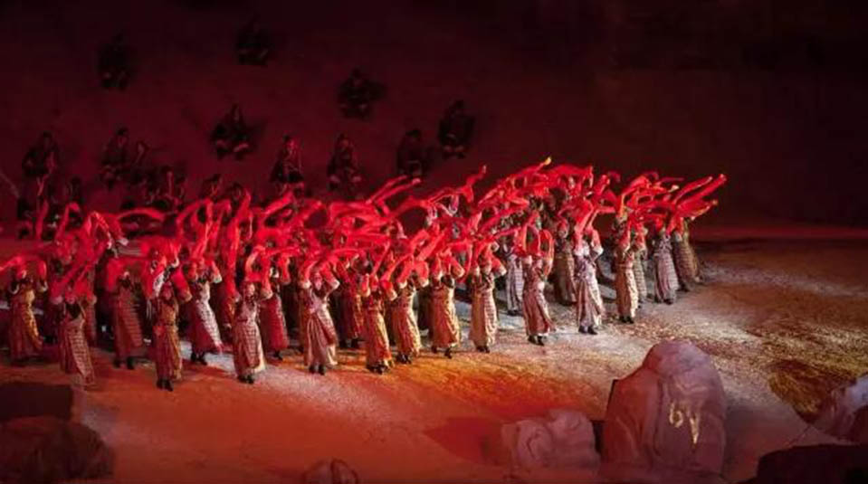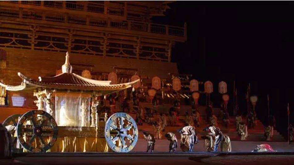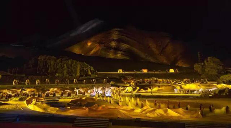 大型藏族實(shí)景劇《文成公主》主要講述文成公主入藏歷經(jīng)艱難的征途和曲折起伏的心路歷程,演繹大唐盛世的愛情傳奇,傳唱漢藏和美的動人史歌。該作品分為“大唐之韻”、“天地梵音”、“藏舞大美”、“藏舞大美”及“藏舞大美”五幕,深度融入漢藏歷史文化、民族風(fēng)俗、自然景觀等,引入了大唐歌舞和流傳久遠(yuǎn)的藏舞、藏戲、佛號念唱等,通過人工舞臺與自然山水的結(jié)合,用高科技的手段呈現(xiàn)非物質(zhì)文化遺產(chǎn),把戲劇、音樂、舞蹈和現(xiàn)代舞美手段融為一爐,構(gòu)成華美樂章。