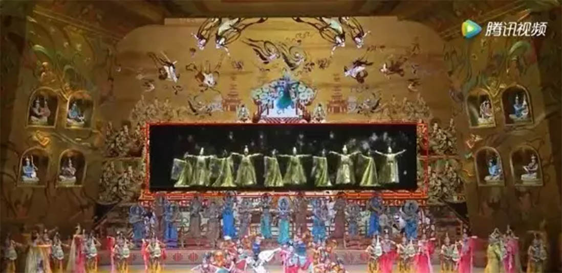 文藝晚會有效運(yùn)用科技元素,使晚會的舞美設(shè)計(jì)帶有顯著特色。晚會多項(xiàng)節(jié)目散發(fā)舞美空間魅力,設(shè)計(jì)師巧妙地把節(jié)目的內(nèi)在意境外化,觀眾也能隨著舞美空間馳騁在想象的旅程中。另外,《千年之約》等節(jié)目中,應(yīng)用了全息投影技術(shù),這也是杭州G20全息技術(shù)的升華應(yīng)用,使壁畫中的人物栩栩如生,實(shí)現(xiàn)真實(shí)的演員和全息影像交替出現(xiàn),與舞臺燈光完美結(jié)合,形成3D全息效果,達(dá)到似真似幻的效果。