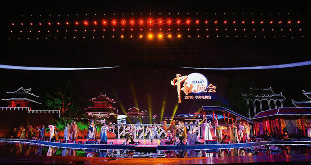 2016年中央電視臺中秋晚會將于9月15日20時在西安向海內(nèi)外觀眾直播,今年的中秋晚會首次以水上舞臺形式演出,在大唐芙蓉園的人工景觀湖上,營造出穿越千年、貫通古今的浪漫意境,讓觀眾真切感受濃郁的唐文化氣息。浩洋電子旗下特寶麗大功率切割燈V3000P、三合一全能王G10 HYBRID 、LED變色燈PB12A等為晚會添彩助力。