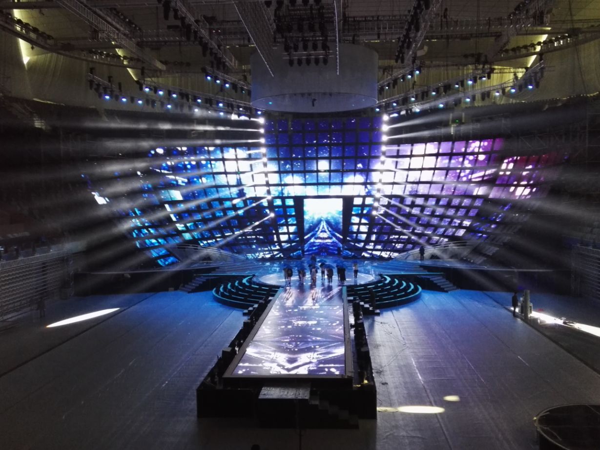 追求新亮點(diǎn)的江蘇衛(wèi)視今年刷新了演唱會(huì)舞臺(tái):四面臺(tái)升級(jí)為360度全景巨型圓舞臺(tái),給觀眾帶來前所未有的視覺沖擊;機(jī)械燈臂組成變形空間站,天幕地屏配合猶如浩瀚宇宙。根據(jù)比利時(shí)的燈光設(shè)計(jì)師Ignace介紹,去年所有構(gòu)造和場(chǎng)景都是為扁長(zhǎng)型舞臺(tái)而設(shè)計(jì),今年所有設(shè)計(jì)都是為了讓觀眾感受到前所未有的一種“沉浸感”,“(每一個(gè)區(qū)域)觀眾到舞臺(tái)距離一致,這和去年有很大的不同,觀眾的感受獨(dú)具一格,是宇宙的感覺。”