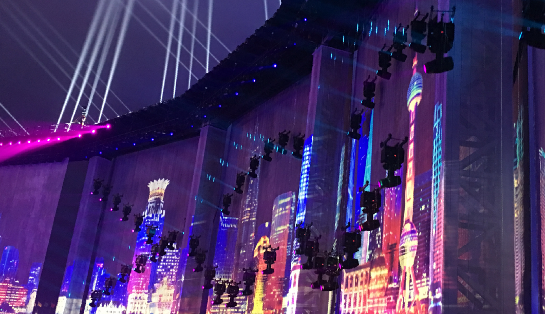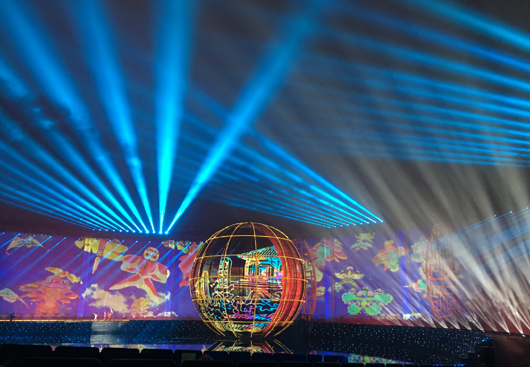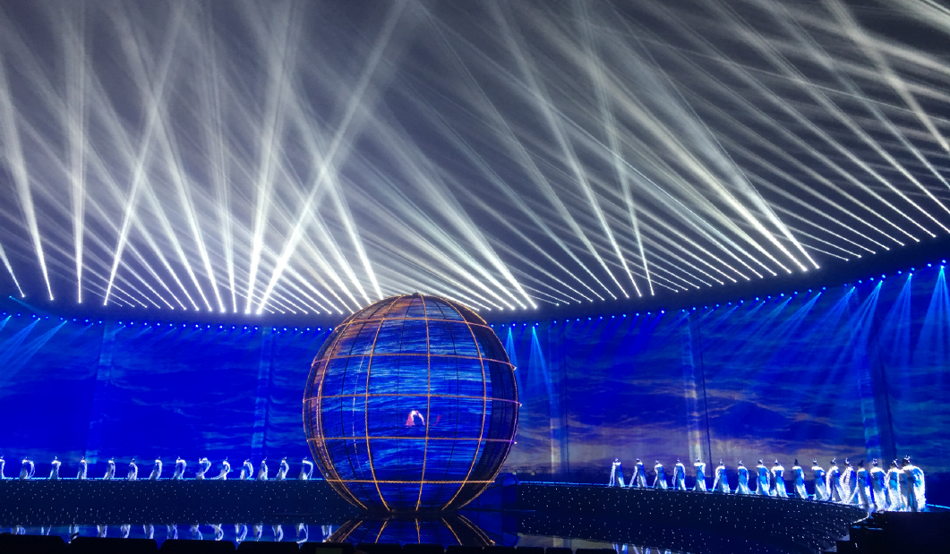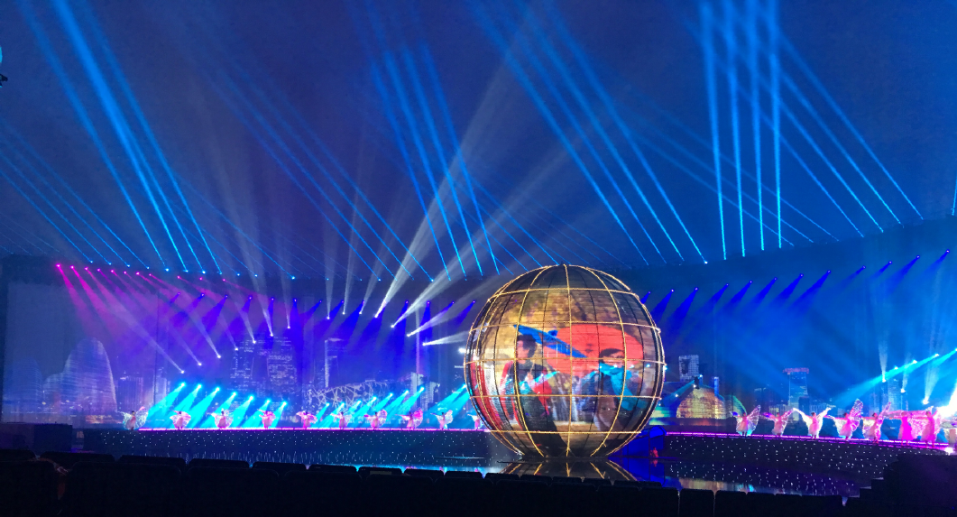 ? ? ? 特別在本次燈光焰火演出中,浩洋電子的飛燈系統(tǒng)依然成為了一大亮點(diǎn),與眾不同的是,浩洋飛燈系統(tǒng)打破了“燈位不動(dòng),只有光在運(yùn)動(dòng)”的限制,讓電腦燈本身也運(yùn)動(dòng)起來(lái),自由翱翔,實(shí)現(xiàn)從“光的運(yùn)動(dòng)”到“運(yùn)動(dòng)的光”著巨大的轉(zhuǎn)變。浩洋飛燈系統(tǒng)的研發(fā)是與2016年9月杭州G20峰會(huì)文藝演出《最憶是杭州》息息相關(guān),當(dāng)時(shí)的總制作人著名燈光設(shè)計(jì)沙曉嵐提出“舞蹈演員吊掛著威亞,從外湖飛入西湖演出舞臺(tái)”的設(shè)想,與合作方浩洋電子進(jìn)行了大量的研發(fā)試驗(yàn),但由于西湖的地理位置限制,這個(gè)創(chuàng)意未能實(shí)現(xiàn),研發(fā)的成果也保留了下來(lái),最終在2017年的央視春晚桂林分會(huì)場(chǎng)實(shí)現(xiàn)了浩洋飛燈系統(tǒng)的全球首秀。在本次上海合作組織青島峰會(huì)燈光焰火藝術(shù)表演中,浩洋飛燈系統(tǒng)以創(chuàng)新科技化燈光震撼獻(xiàn)力國(guó)家重要演出活動(dòng),勾勒出一幅科技燈光與文化相融合的視覺(jué)美景。