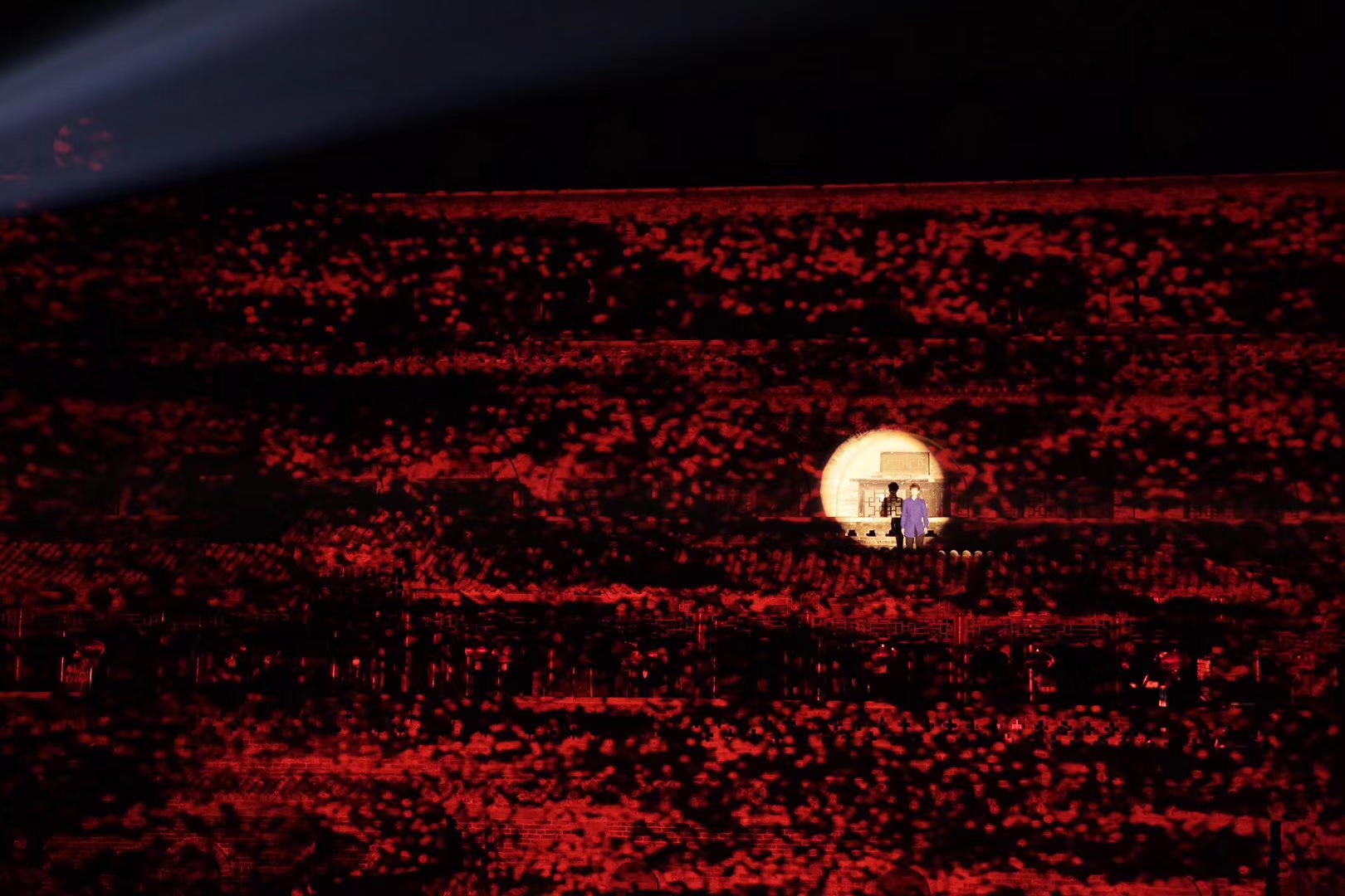 演出打破傳統(tǒng)的觀演模式,打造浸入式、行進式的實景體驗觀演,配合別致精巧的舞美、細致入微的光影、豐富多彩的復合技術(shù)以及震撼靈動的音響系統(tǒng)交織聯(lián)動,多種觀感相融合,讓觀眾忘我地融入?yún)⑴c故事之中,令人不知不覺沉醉其中,形成別具一格的沉浸式演出體驗。