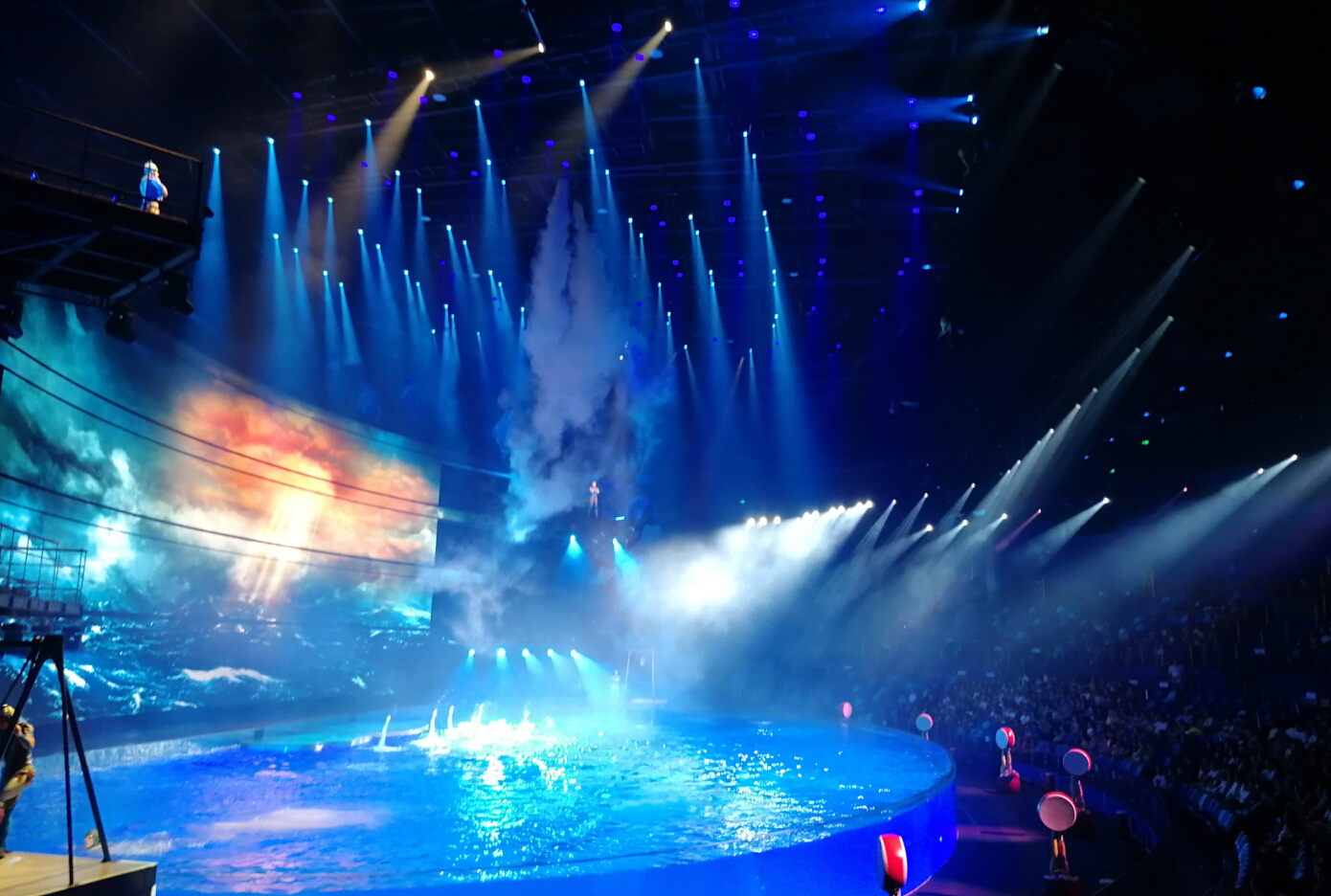 演出中,浩洋電子全能王三合一電腦燈G12HYBRID、切割燈V3000P、圖案燈V2500S、LED PAR燈A51-E近400臺(tái)專業(yè)舞臺(tái)燈光設(shè)備為現(xiàn)場(chǎng)助陣。浩洋燈光設(shè)備投射出炫目的燈光,與現(xiàn)場(chǎng)的煙霧、水面特效、無人機(jī)、各種大型自動(dòng)化舞美機(jī)械在內(nèi)的國(guó)際頂尖舞臺(tái)技術(shù)相互配合,融合水中芭蕾、空中藝術(shù)、花式跳水等眾多表演元素,共同呈現(xiàn)原創(chuàng)鉅制,還原了傳說中神秘古老的“亞特蘭蒂斯”世界。