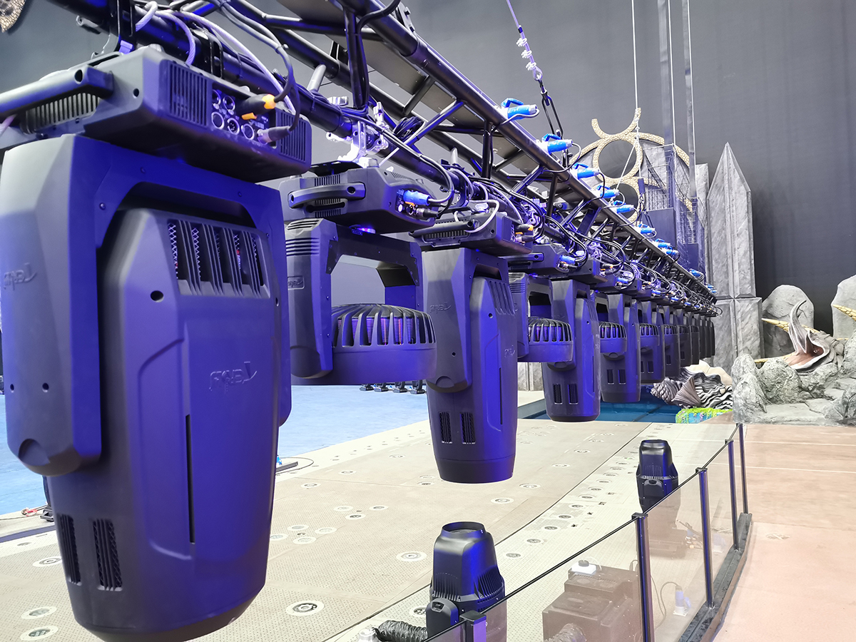 作為全新的文旅地標,長隆劇院設(shè)計體現(xiàn)出智能科技的前沿性和實用性?,F(xiàn)場使用了實現(xiàn)實時升降的智能電腦燈具,其中浩洋電子傾力支持了大部分燈具,其中建筑照明燈GSARC DOT M系列提供了180臺,以科技之光點亮這場全新的大型馬戲,運用多屏幕的全景環(huán)繞技術(shù)將極致地將舞美、燈光、音響等元素重新定義整合,使劇情氛圍更加緊湊。