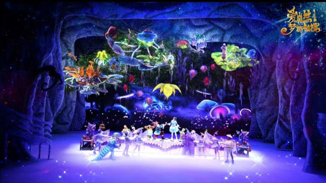 冰舞劇以英國童話大師劉易斯·卡羅爾的《愛麗絲夢游仙境》經(jīng)典兒童故事為本,將冰舞、戲劇、音樂、舞蹈、雜技、裝置、聲光電等藝術元素多維結合,營造多層次的舞美影像,在奇幻、唯美的視聽體驗中,引導觀眾進入奇妙的探險之旅。