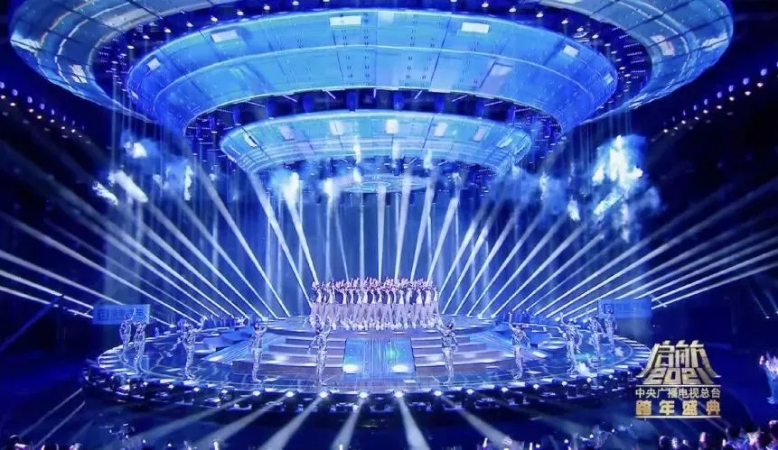 這次盛會(huì)的燈光設(shè)計(jì)圍繞“啟航·看中國”主題設(shè)計(jì)出一艘360度的太空飛船,燈光設(shè)計(jì)在此基礎(chǔ)上將太空飛船進(jìn)行了270度的視覺包裹,將主背景設(shè)計(jì)為矩陣燈墻,為舞臺(tái)整體視覺提升高度。