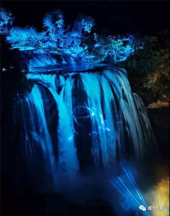 《黃果樹夜游》是國內(nèi)首個(gè)自然峽谷5A景區(qū)沉浸式全景體驗(yàn)光雕影像秀。