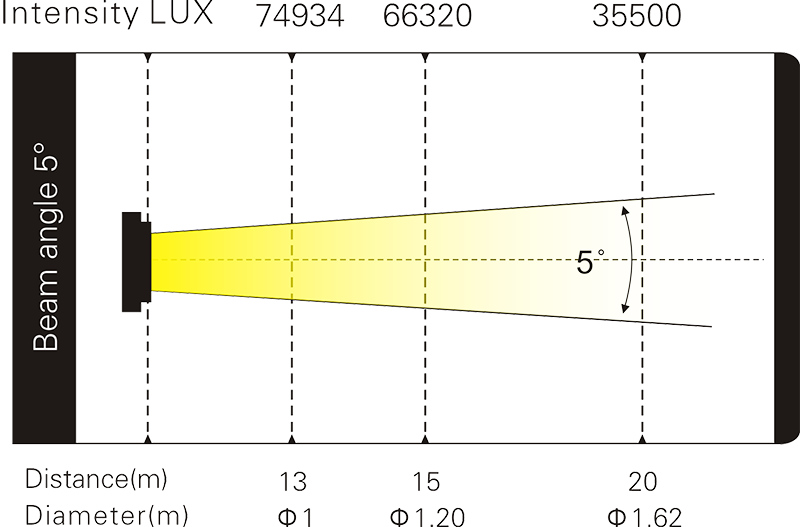 光斑角度:5°,制造接近平行的的特殊光束效果