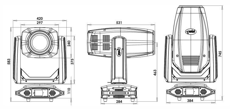 可從控臺完成更改DMX地址碼,機器重設等功能