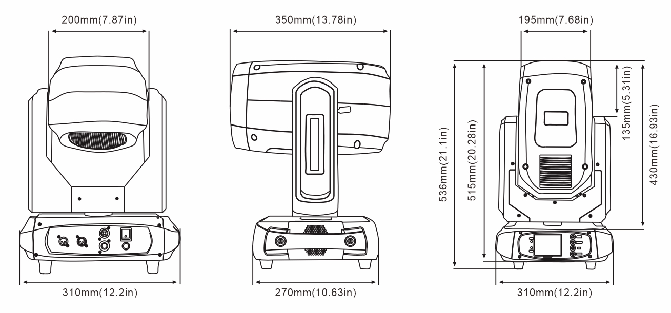 4種通道模式: DMX模式、自走模式、聲控模式和場景模式