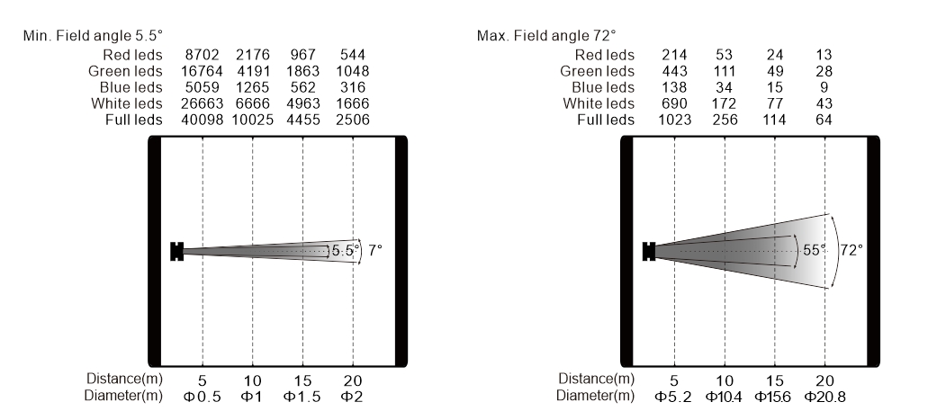 變焦范圍:光束角: 5.5°-55°,光斑角: 7°-72°