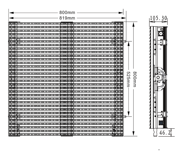 “條屏”系列LED顯示屏利用框架結(jié)構(gòu),把頂部拉條、底部拉條、中心電源盒及LED燈條緊密的連結(jié)在一起。這樣的結(jié)構(gòu)設(shè)計(jì)可以實(shí)現(xiàn)快速、方便的前后雙面安裝及維護(hù)。
