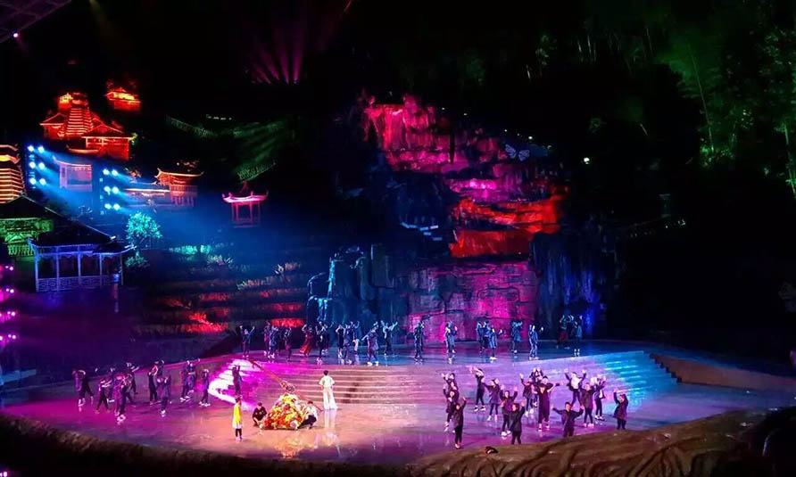浩洋電子通過極富創(chuàng)意的燈光設(shè)計和表現(xiàn)力十足的燈光應(yīng)用,準(zhǔn)確地描繪出侗寨的文化特性,將燈光演繹與當(dāng)?shù)氐纳剿L(fēng)景完美融合,共同構(gòu)成一個演出的整體,為《薩瑪》增添了新的藝術(shù)形態(tài),衍生出了新的看點,成為貴州省內(nèi)極具民族文化特色的旅游演藝新標(biāo)桿!
