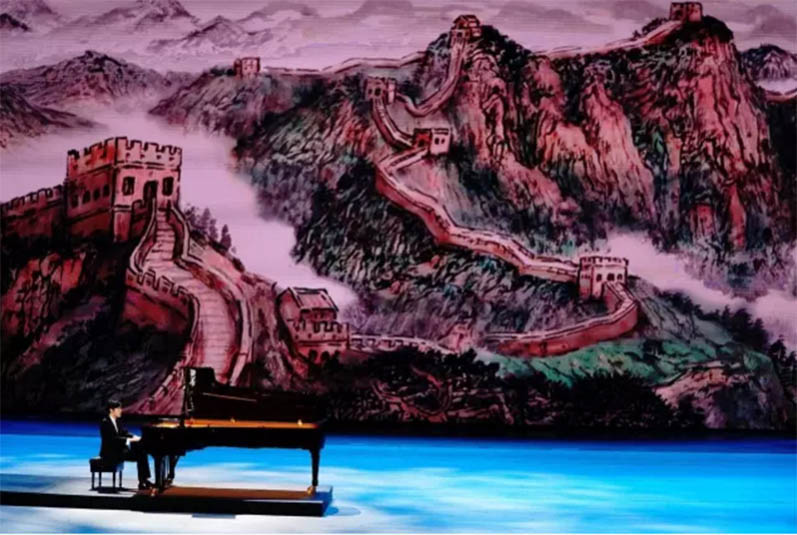 整場文藝晚會具有東西方交融、歷史和未來交融、傳統(tǒng)和科技交融以及不同藝術(shù)間交融,多種交融的觀點(diǎn)和方法始終貫徹到每個(gè)主題。器樂和戲曲的生動(dòng)表演展示中華文化底蘊(yùn)和輝煌歷史,青花絲綢與芭蕾藝術(shù)結(jié)合、鋼琴與繪畫相結(jié)合體現(xiàn)中外藝術(shù)有機(jī)融合和創(chuàng)新,彰顯文化自信,聚盛世中國之璀璨,展“一帶一路”之風(fēng)采。