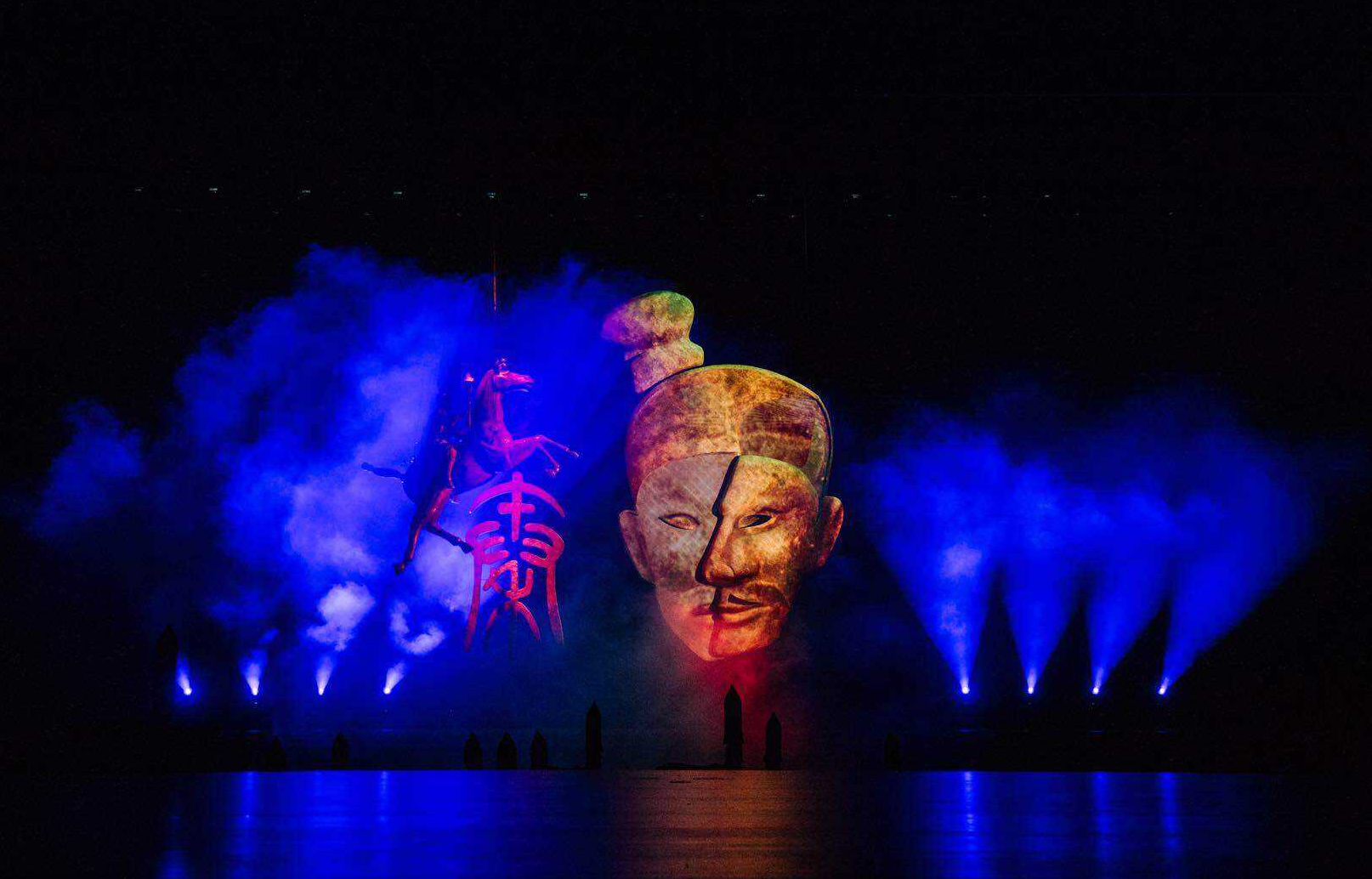 作為臨潼區(qū)2018年推出的重大文化產(chǎn)業(yè)項(xiàng)目之一,多媒體史詩大秀《秦》耗資了7億巨資打造,在充分借鑒國內(nèi)外全新的演藝形式和技術(shù)手段后,將現(xiàn)代聲光、電技術(shù)與舞美相結(jié)合,采用超寬幅全息影像、冰屏介質(zhì)投影等新型舞臺(tái)科技,應(yīng)用冰屏與紗幕的完美配合,渲染整個(gè)舞臺(tái)的氛圍,打造一臺(tái)多維立體感的大秀,在舞臺(tái)上活化兵馬俑,生動(dòng)地帶領(lǐng)全球觀眾感受大秦帝國的魅力。