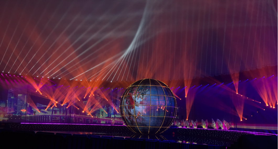 ? ? ? ?為迎接各方來(lái)賓,峰會(huì)于2018年6月9日夜間在青島奧帆中心舉辦了一場(chǎng)名為《有朋自遠(yuǎn)方來(lái)》的燈光焰火藝術(shù)表演。浩洋電子作為國(guó)際領(lǐng)先的專業(yè)燈光設(shè)備供應(yīng)商,為此次燈光焰火藝術(shù)表演提供了主要的專業(yè)優(yōu)質(zhì)燈光服務(wù),129套“浩洋智造”科技創(chuàng)新型飛燈系統(tǒng)攜LED染色燈OK190Z-RII、切割燈V3000P等多款高質(zhì)量專業(yè)舞臺(tái)燈具再現(xiàn)國(guó)際級(jí)文藝演出舞臺(tái),浩洋燈光用出色的燈光科技表現(xiàn)手段再創(chuàng)科技與文化的完美融合,穩(wěn)定高效地為高清電視轉(zhuǎn)播提供了全方位有力的支持。
