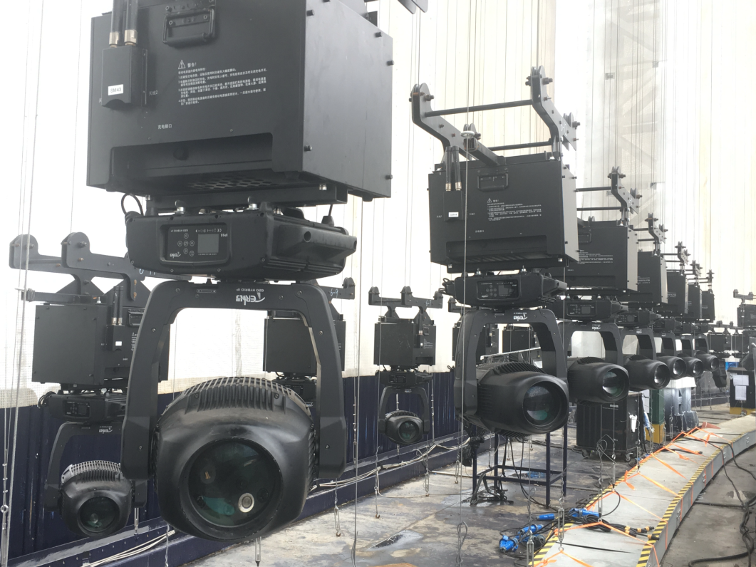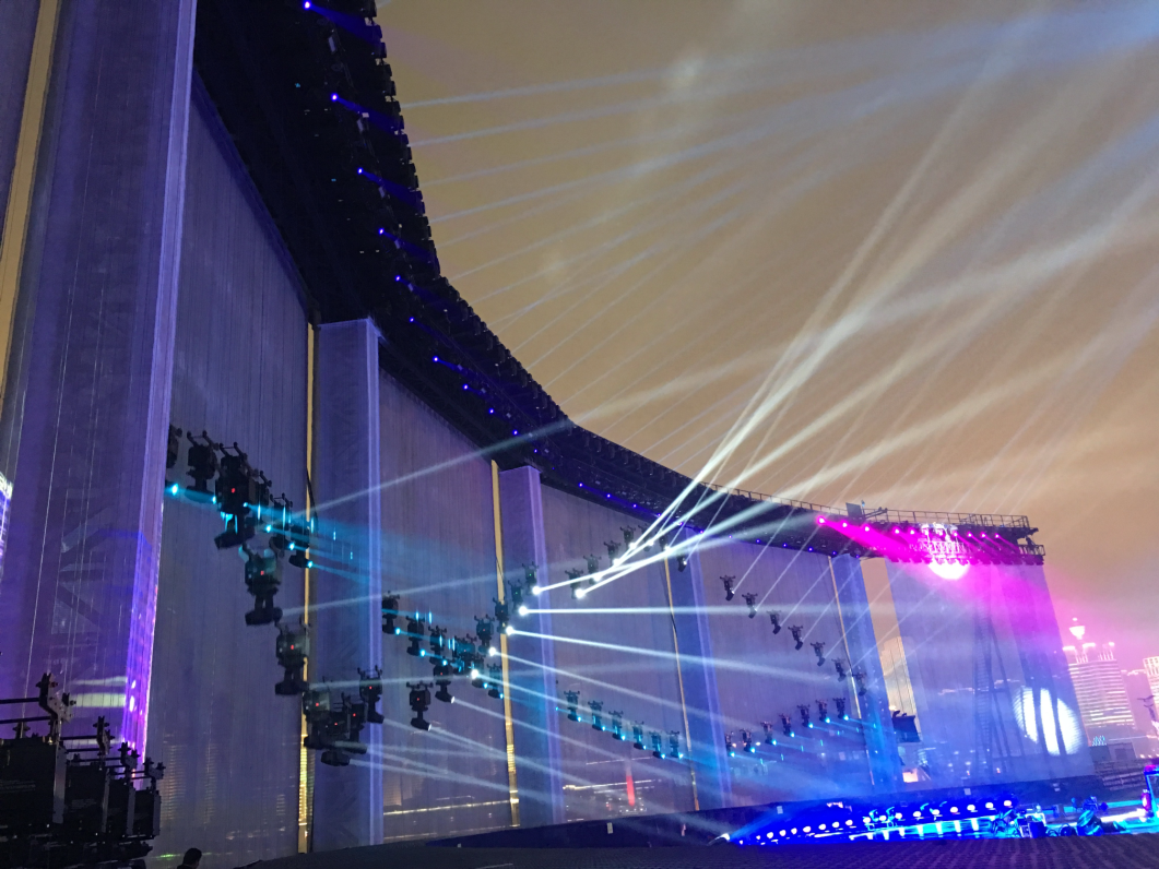 ? ? ? 特別在本次燈光焰火演出中,浩洋電子的飛燈系統(tǒng)依然成為了一大亮點(diǎn),與眾不同的是,浩洋飛燈系統(tǒng)打破了“燈位不動(dòng),只有光在運(yùn)動(dòng)”的限制,讓電腦燈本身也運(yùn)動(dòng)起來(lái),自由翱翔,實(shí)現(xiàn)從“光的運(yùn)動(dòng)”到“運(yùn)動(dòng)的光”著巨大的轉(zhuǎn)變。浩洋飛燈系統(tǒng)的研發(fā)是與2016年9月杭州G20峰會(huì)文藝演出《最憶是杭州》息息相關(guān),當(dāng)時(shí)的總制作人著名燈光設(shè)計(jì)沙曉嵐提出“舞蹈演員吊掛著威亞,從外湖飛入西湖演出舞臺(tái)”的設(shè)想,與合作方浩洋電子進(jìn)行了大量的研發(fā)試驗(yàn),但由于西湖的地理位置限制,這個(gè)創(chuàng)意未能實(shí)現(xiàn),研發(fā)的成果也保留了下來(lái),最終在2017年的央視春晚桂林分會(huì)場(chǎng)實(shí)現(xiàn)了浩洋飛燈系統(tǒng)的全球首秀。在本次上海合作組織青島峰會(huì)燈光焰火藝術(shù)表演中,浩洋飛燈系統(tǒng)以創(chuàng)新科技化燈光震撼獻(xiàn)力國(guó)家重要演出活動(dòng),勾勒出一幅科技燈光與文化相融合的視覺(jué)美景。
