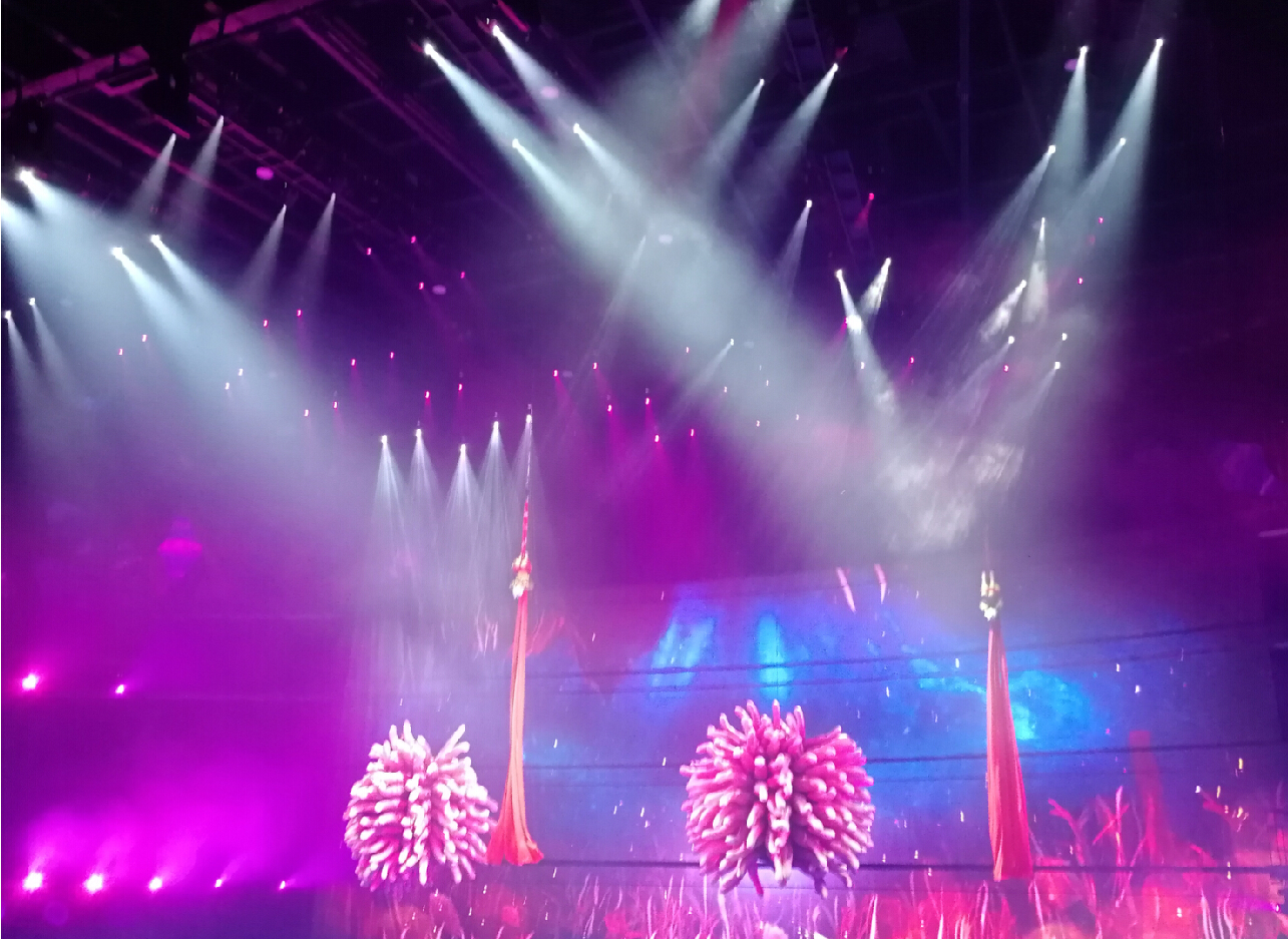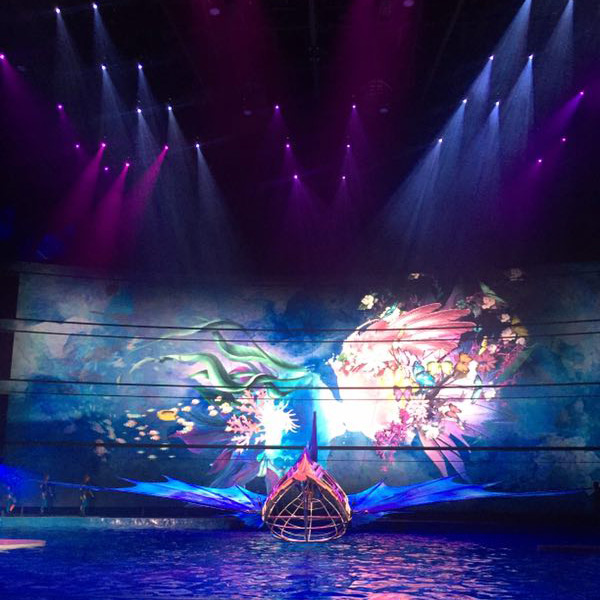 演出中,浩洋電子全能王三合一電腦燈G12HYBRID、切割燈V3000P、圖案燈V2500S、LED PAR燈A51-E近400臺(tái)專業(yè)舞臺(tái)燈光設(shè)備為現(xiàn)場(chǎng)助陣。浩洋燈光設(shè)備投射出炫目的燈光,與現(xiàn)場(chǎng)的煙霧、水面特效、無人機(jī)、各種大型自動(dòng)化舞美機(jī)械在內(nèi)的國(guó)際頂尖舞臺(tái)技術(shù)相互配合,融合水中芭蕾、空中藝術(shù)、花式跳水等眾多表演元素,共同呈現(xiàn)原創(chuàng)鉅制,還原了傳說中神秘古老的“亞特蘭蒂斯”世界。