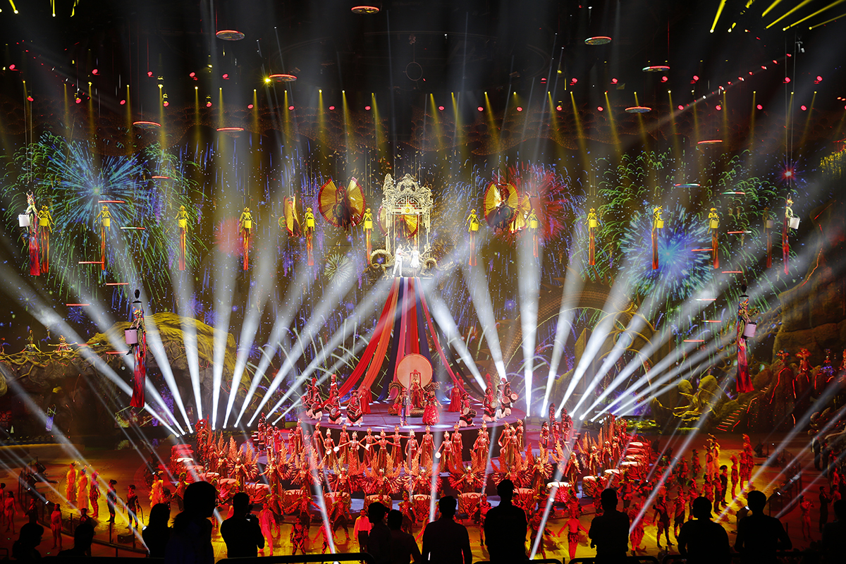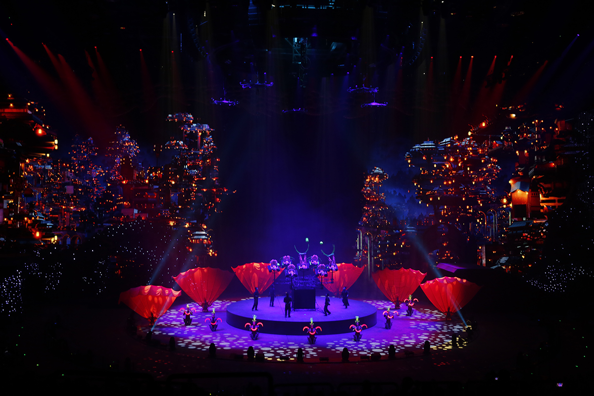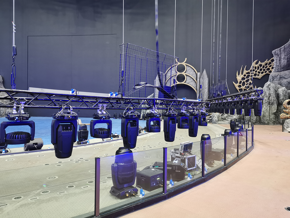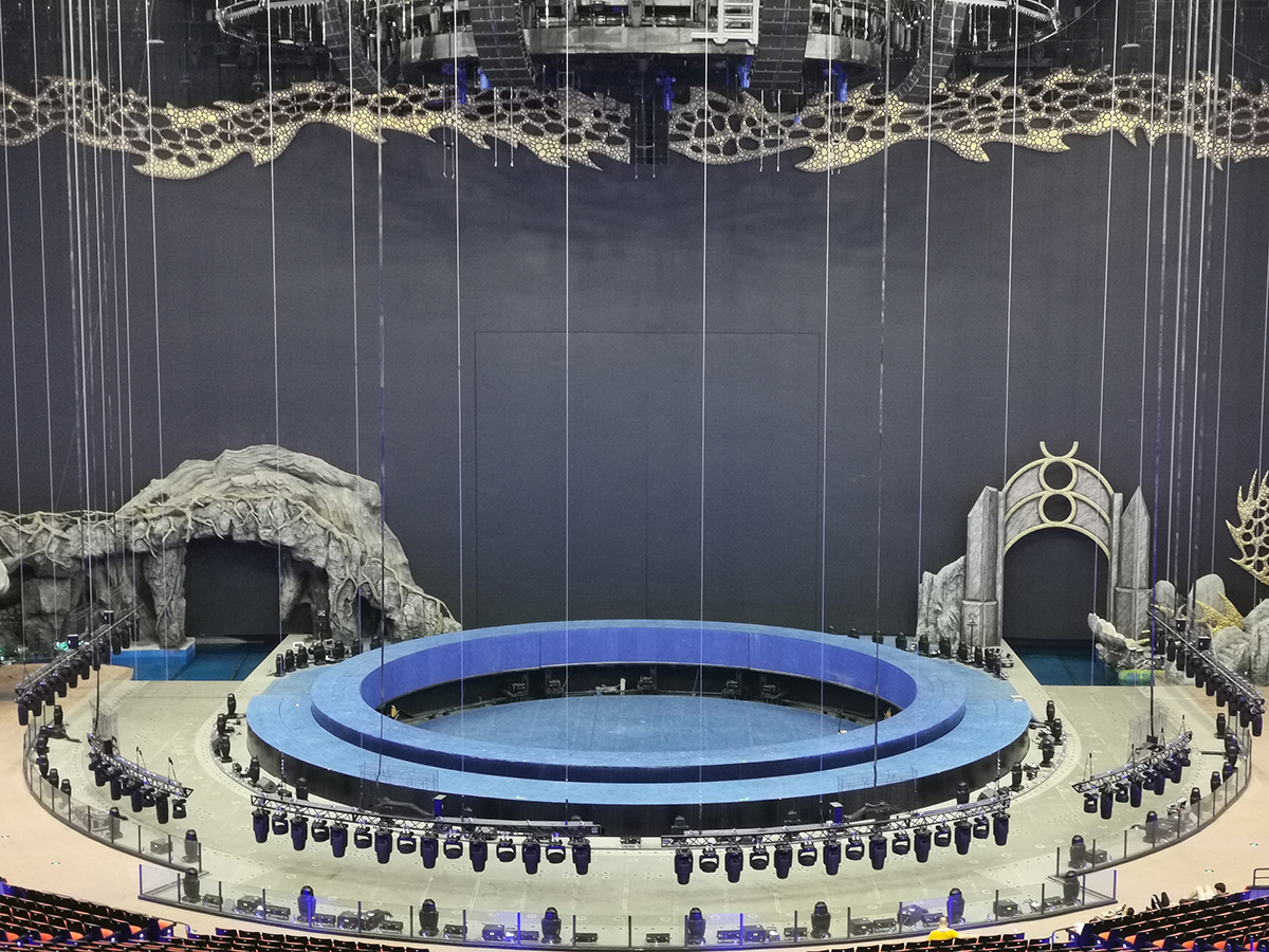 作為全新的文旅地標,長隆劇院設(shè)計體現(xiàn)出智能科技的前沿性和實用性?,F(xiàn)場使用了實現(xiàn)實時升降的智能電腦燈具,其中浩洋電子傾力支持了大部分燈具,其中建筑照明燈GSARC DOT M系列提供了180臺,以科技之光點亮這場全新的大型馬戲,運用多屏幕的全景環(huán)繞技術(shù)將極致地將舞美、燈光、音響等元素重新定義整合,使劇情氛圍更加緊湊。