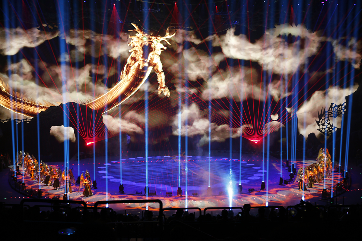 《龍秀》把傳統(tǒng)馬戲與舞臺表演劇相結(jié)合,這是對傳統(tǒng)馬戲的一次新的突破與嘗試,這堪稱長隆國際演藝的又一里程碑新巨作。同時,《龍秀》也是一場國際大秀,融合了雜技、舞蹈、魔術(shù)、極限運動、聲樂、花樣游泳等多種藝術(shù)門類,匯聚了來自22個國家、30多支團隊、300多名各個國家優(yōu)秀的馬戲藝術(shù)家共同演繹這出大制作。