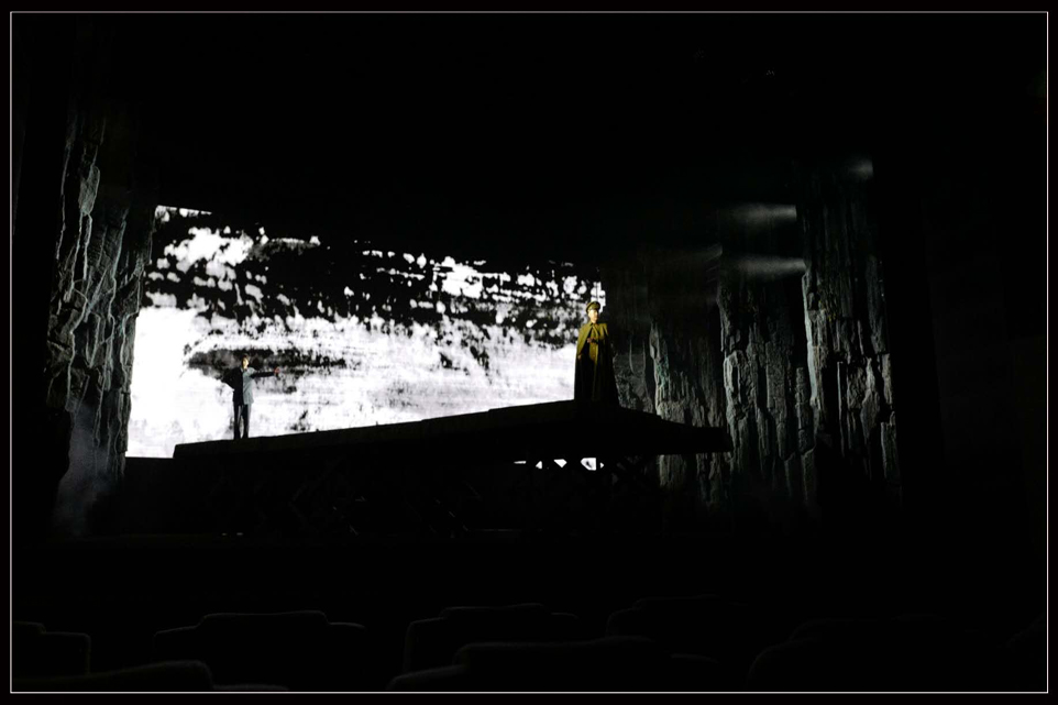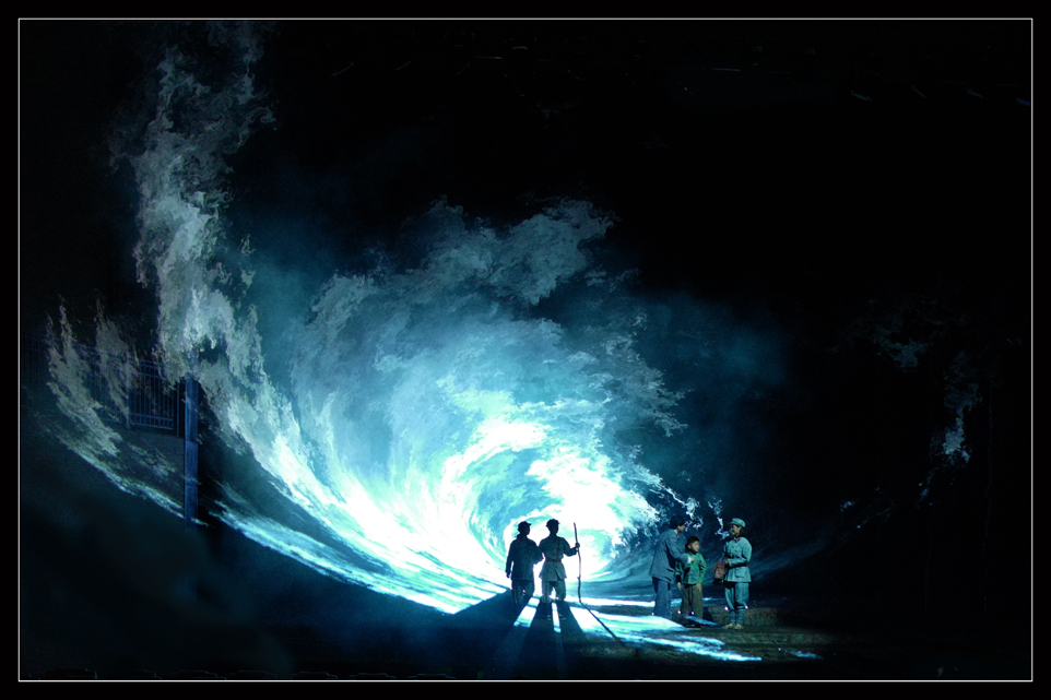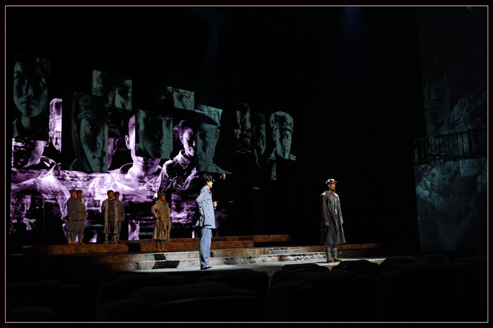 舞臺劇中 “交互式”的藝術(shù)表現(xiàn)形式,涵蓋了話劇、舞劇、舞臺美術(shù)、音樂、音響、多媒體、燈光等一系列在其中,讓劇目更具有生命力,更具有視覺感官沖擊,能夠?qū)v史重現(xiàn)在觀眾的眼前,呈現(xiàn)一個逼真的全維度感官場景。