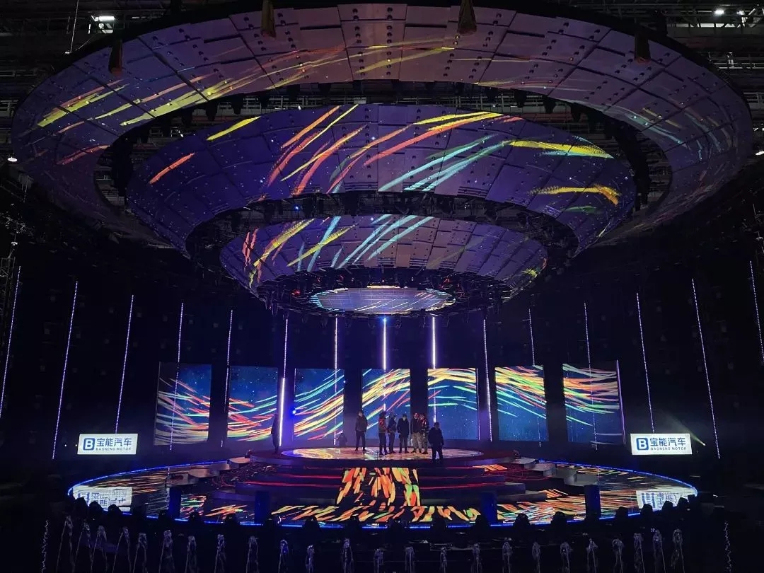 這次盛會(huì)的燈光設(shè)計(jì)圍繞“啟航·看中國”主題設(shè)計(jì)出一艘360度的太空飛船,燈光設(shè)計(jì)在此基礎(chǔ)上將太空飛船進(jìn)行了270度的視覺包裹,將主背景設(shè)計(jì)為矩陣燈墻,為舞臺(tái)整體視覺提升高度。