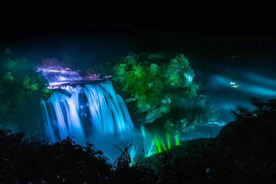 《黃果樹夜游》是國內(nèi)首個(gè)自然峽谷5A景區(qū)沉浸式全景體驗(yàn)光雕影像秀。