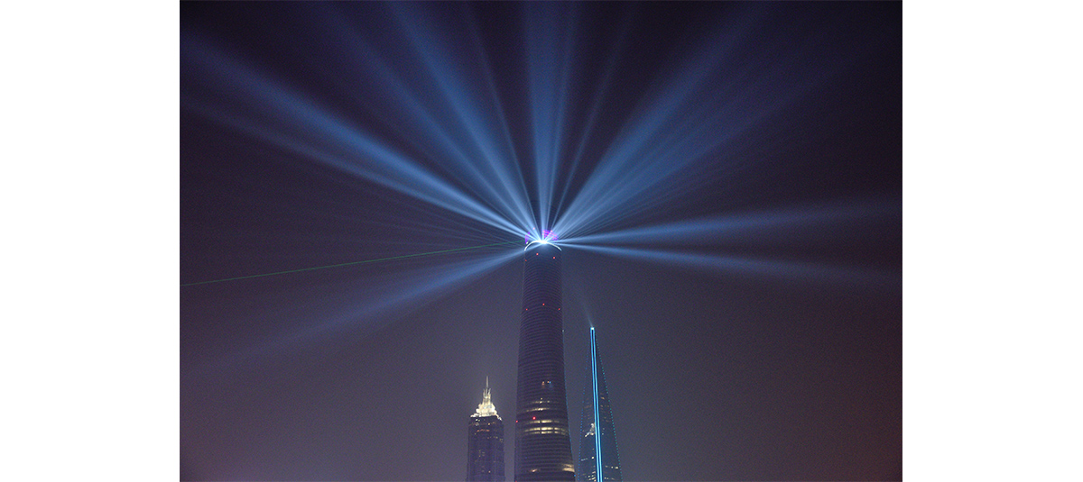 在上海中心,總共使用了47臺浩洋電子轟天炮G10B,配套使用47個特寶麗WP06防水罩。今天,讓我們沖上云霄,看看在中國第一高樓——632米之上的全球最亮光束燈轟天炮G10B!