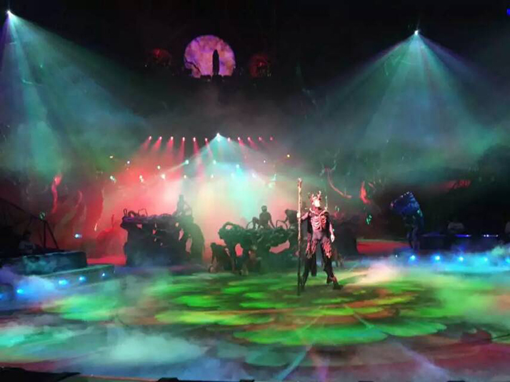 浩洋電子搖頭染色燈PT330W外形輕巧,光斑角度小,具有光斑均勻、色彩柔和細(xì)膩等特點,曾在張惠妹2015烏托邦世界巡城演唱會和Katy Perry棱鏡中國首秀中有過精彩表現(xiàn)。在傣秀舞臺上配合浩洋電子另一款大功率搖頭染色燈V2000W,共同烘托出奇幻、絢爛的視覺效果。