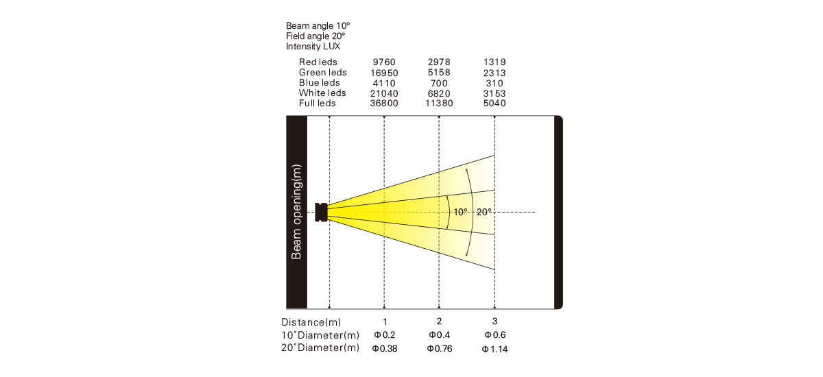 5種通道模式:4/5/6/8/36個(gè)國際標(biāo)準(zhǔn)DMX512通道
